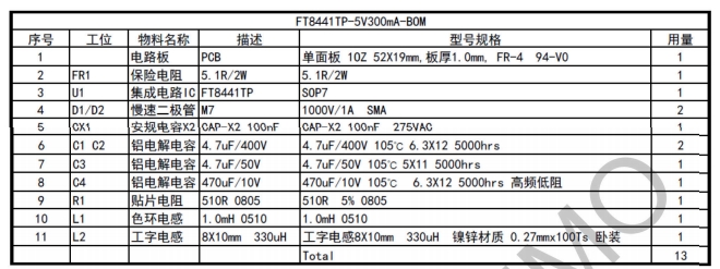 FT8441TP 是一款專為小家電輔助電源設計的高性能非隔離式開關電源芯片,能夠提供高精度、高效率的恒壓輸出。本文將詳細介紹基于 FT8441TP 的 5V300mA 電源芯片 DEMO 板的參考設計,涵蓋其特點、電源規格、電路原理圖、PCB 布局以及物料清單等關鍵信息。