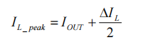 其中,ΔIL=IL×r,IL為最大負(fù)載電流,F(xiàn)SW為開關(guān)頻率。在最大負(fù)載條件下,芯片工作在CCM模式,峰值電流公式為: