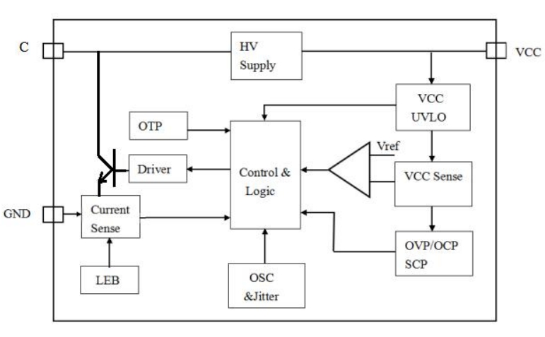 PL3383T內(nèi)部集成了高壓功率管、高壓啟動電路以及多種保護功能電路。這種高集成度設(shè)計不僅減少了外部元件的數(shù)量,降低了電路的復(fù)雜性和成本,還提高了系統(tǒng)的可靠性和穩(wěn)定性。
