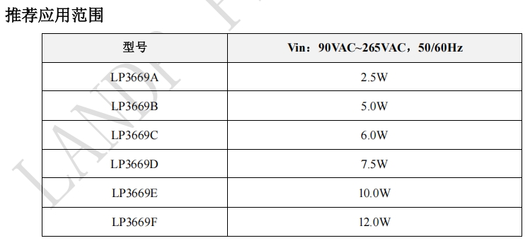 LP3669系列芯片根據(jù)不同的輸出功率需求,提供了多種型號(hào)選擇。以下是該系列的主要型號(hào)及其輸出功率范圍: