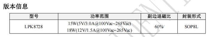 在保護(hù)功能方面,LPK8728提供了全面的保障,包括VCC鉗位/欠壓保護(hù)、FB腳電阻開短路保護(hù)、輸出短路保護(hù)、輸出過壓保護(hù)以及過溫保護(hù)等。這些保護(hù)功能確保了芯片在各種異常工作條件下的穩(wěn)定性和可靠性。LPK8728采用SOP8L封裝,具有良好的散熱性能和易于集成的特點(diǎn)。