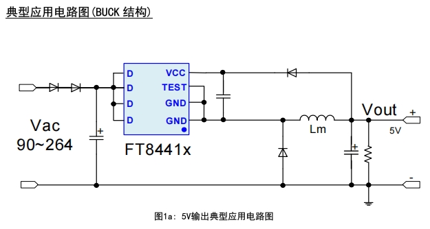 FT8441S 和 FT8441A 在 Buck 結構下的 5V 輸出應用電路非常簡潔高效,以下是其典型應用電路圖及設計要點:
