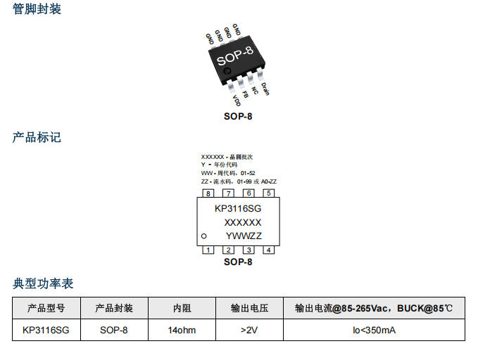 KP3116SGA 的出現,讓這三道門檻變成了一條“直線”——因為它把 700 V 功率 MOSFET、高壓啟動、多模式 PWM 控制器全部塞進一顆 SOP-8,還順手把“固定時鐘”拿掉了。