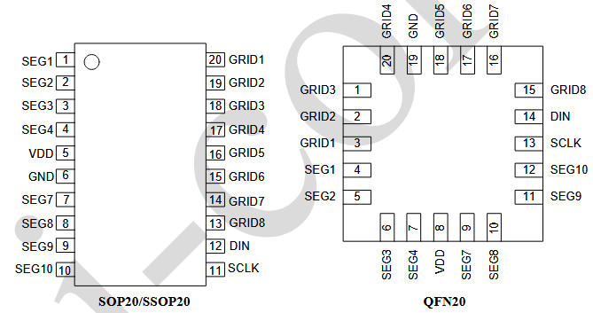SOP20/SSOP20頂視圖(QFN僅序號(hào)差異):