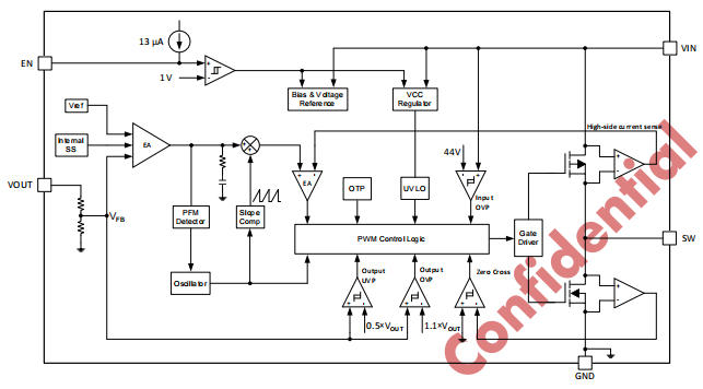 VIN OVP 44V/42V(滯回)—— 抑制汽車負(fù)載跳變尖峰