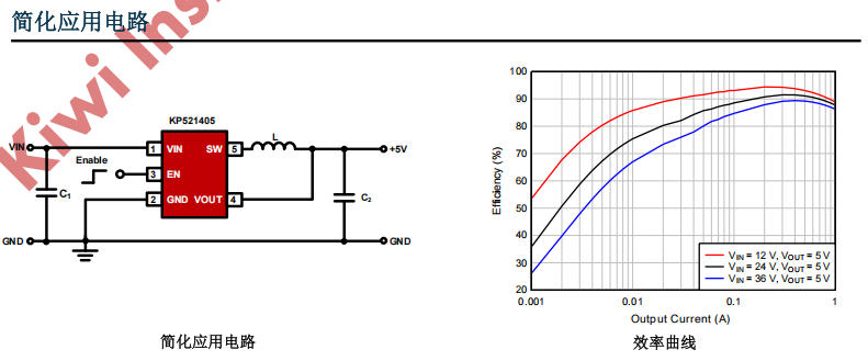 5V 效率:Vin=12/24/36V,負(fù)載 0.001-1A 曲線平坦,1A 時(shí)仍>90%